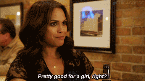 “Forty pounds of equipment up a gazillion flights of stairs. Not only can she save the lives of men twice her size before she’s had breakfast, but I would happily put my safety in her hands and trust that she could crush the nuts of anyone who tried to harm me.”